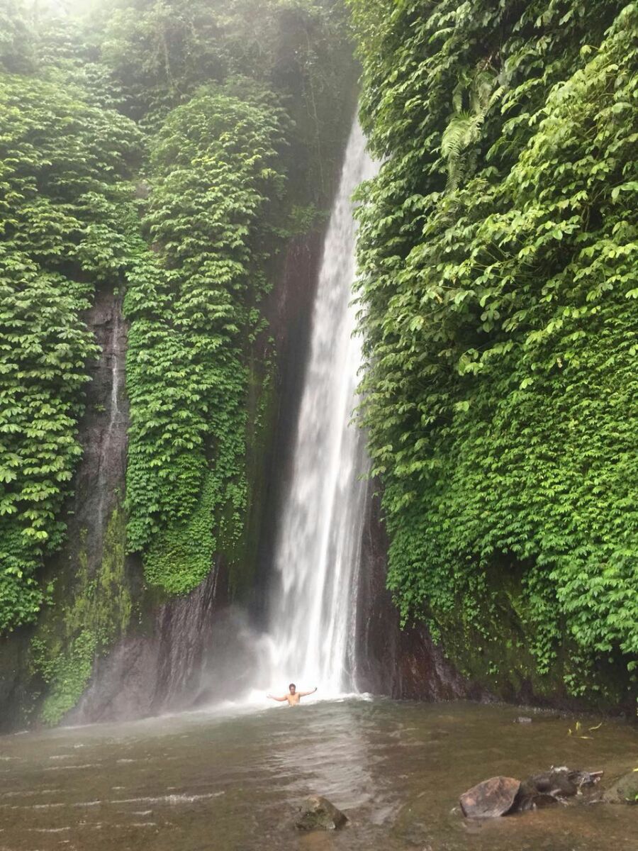 Далее наш путь лежит через кофейные плантации по горному серпантину к великолепноым водопадам. Здесь бывает гораздо меньше туристов, чем на расположенном неподалёку Гит-Гите. Но Банюмала не уступают ему по красоте, к тому же они выше – потоки воды летят с высоты 40 метров. Этот водопад один из самых красивых не только на Бали, но и во всём мире.