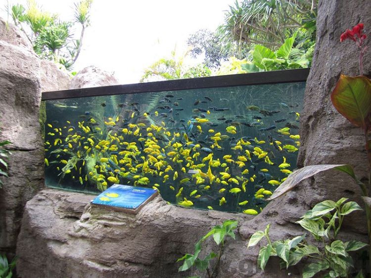 Эта часть парка посвящена представителям морской, речной и озёрной фауны. В огромном аквариуме проживают рыбы и морские животные из всех уголков земного шара. Здесь вы можете понаблюдать за белой акулой – кровожадным хищником, грозой тропических морей. Посмотрите как обедают пираньи, увидите осьминогов и спрутов. В Морском парке собрано более тысячи различных рыб и других обитателей подводного мира.