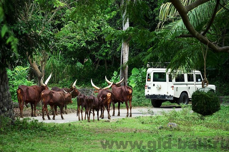 Вам предстоит увлекательная автобусная экскурсия, на которой вы увидите множество зверей и птиц. Животные здесь чувствуют себя превосходно, для них созданы практически идеальные условия – в парке нет клеток, а немногочисленные вольеры настолько просторны, что не создают обитателям никаких неудобств. Внутри этого рукотворного заповедника есть миниатюрная африканская саванна, балийские тропические леса с развалинами храмов и скульптурами индуистских богов, таинственные пещеры, маленькие озёра и огромные аквариумы. Я привезу вас к воротам парка, а по его территории вы будете передвигаться в специально оборудованном автобусе.